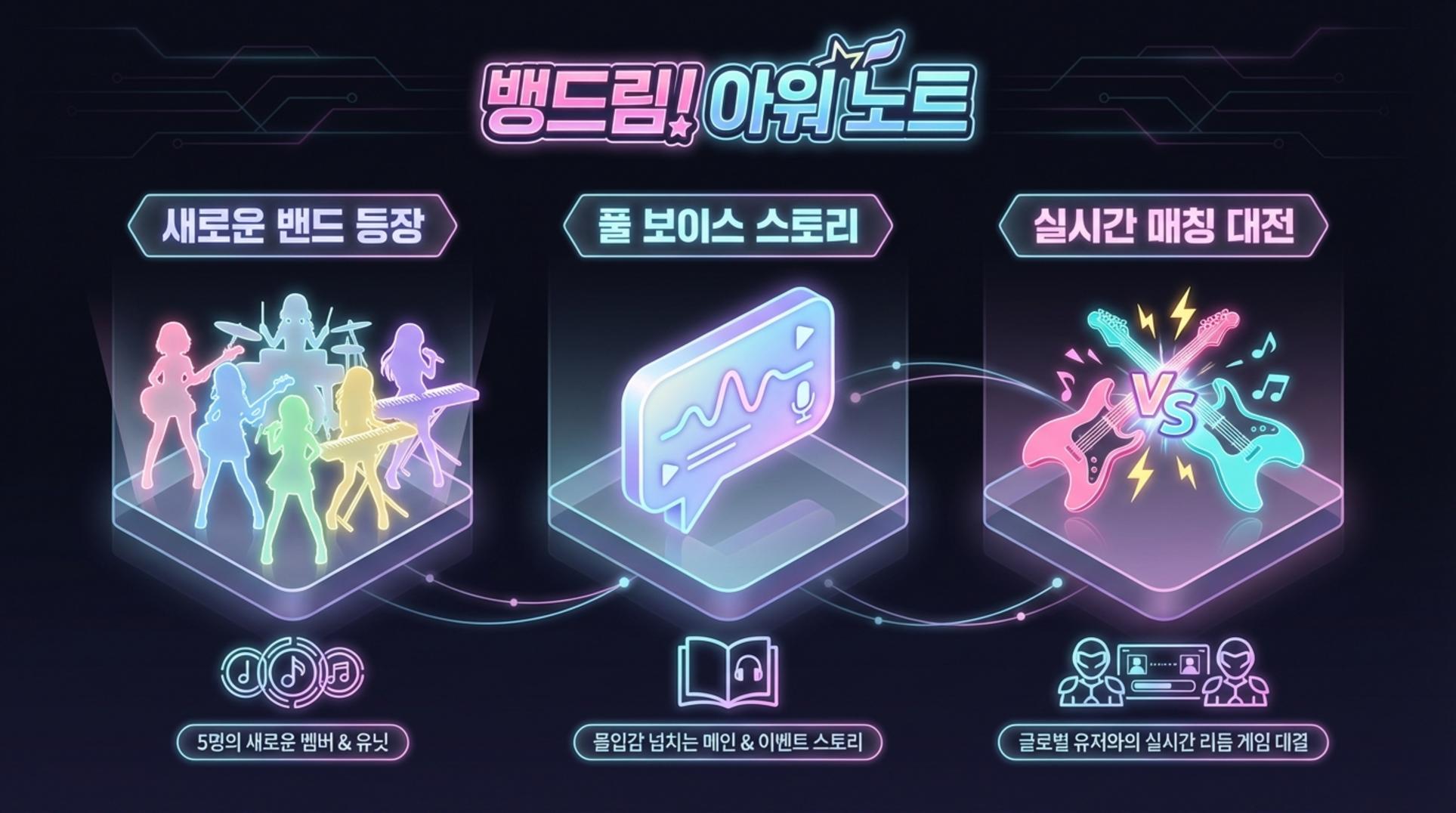뱅드림! 신작 '아워 노트' 최초 공개! 2026년 모바일 리듬 게임 시장의 판도를 바꿀까?