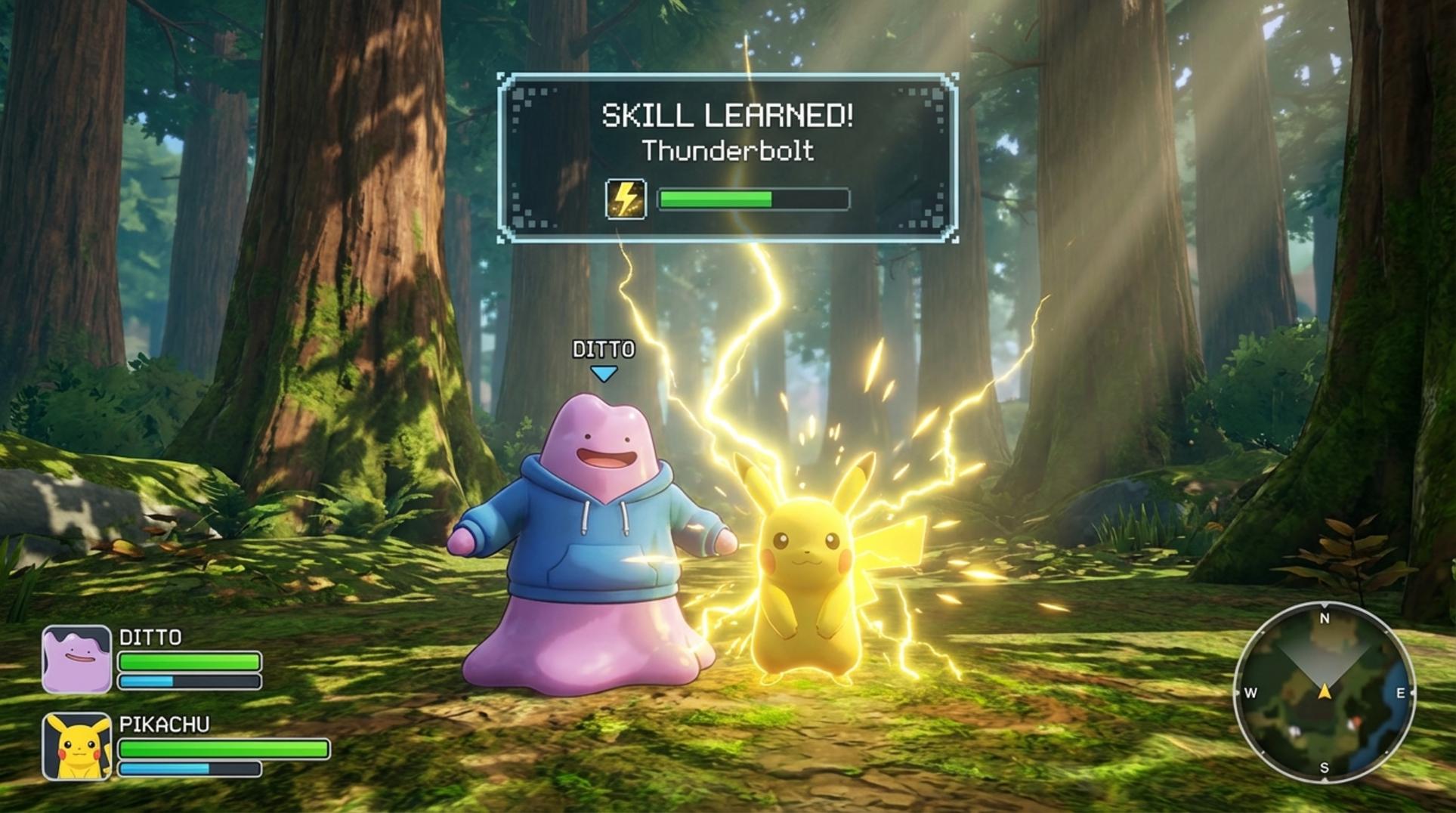 단순히 모습만 따라 하는 것이 아니라, 다른 포켓몬들의 '물대포'나 '풀베기' 같은 기술을 배워 나무에 물을 주거나 잡초를 제거하는 등 마을 건설에 활용하는 독특한 시스템이 특징입니다. 이는 포켓몬 게임 역사상 최초의 시도로, 팬들에게 신선한 충격을 안겨주었습니다.