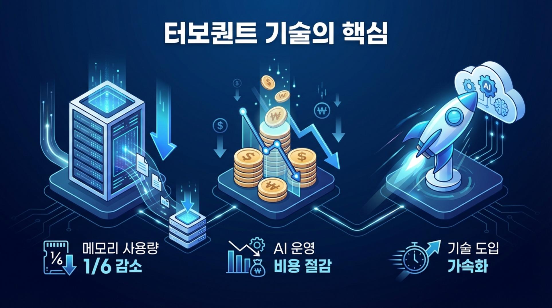 - 혁신적인 메모리 압축: AI 모델의 메모리 사용량을 기존 대비 6분의 1 수준으로 대폭 감소시킵니다.