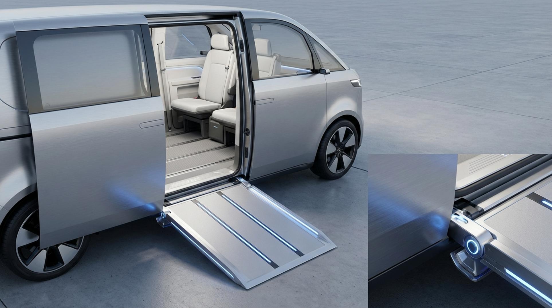 - 넓은 측면 출입구: 755mm에 달하는 측면 슬라이딩 도어 개구 폭으로 부피가 큰 전동 휠체어도 여유롭게 출입할 수 있습니다.