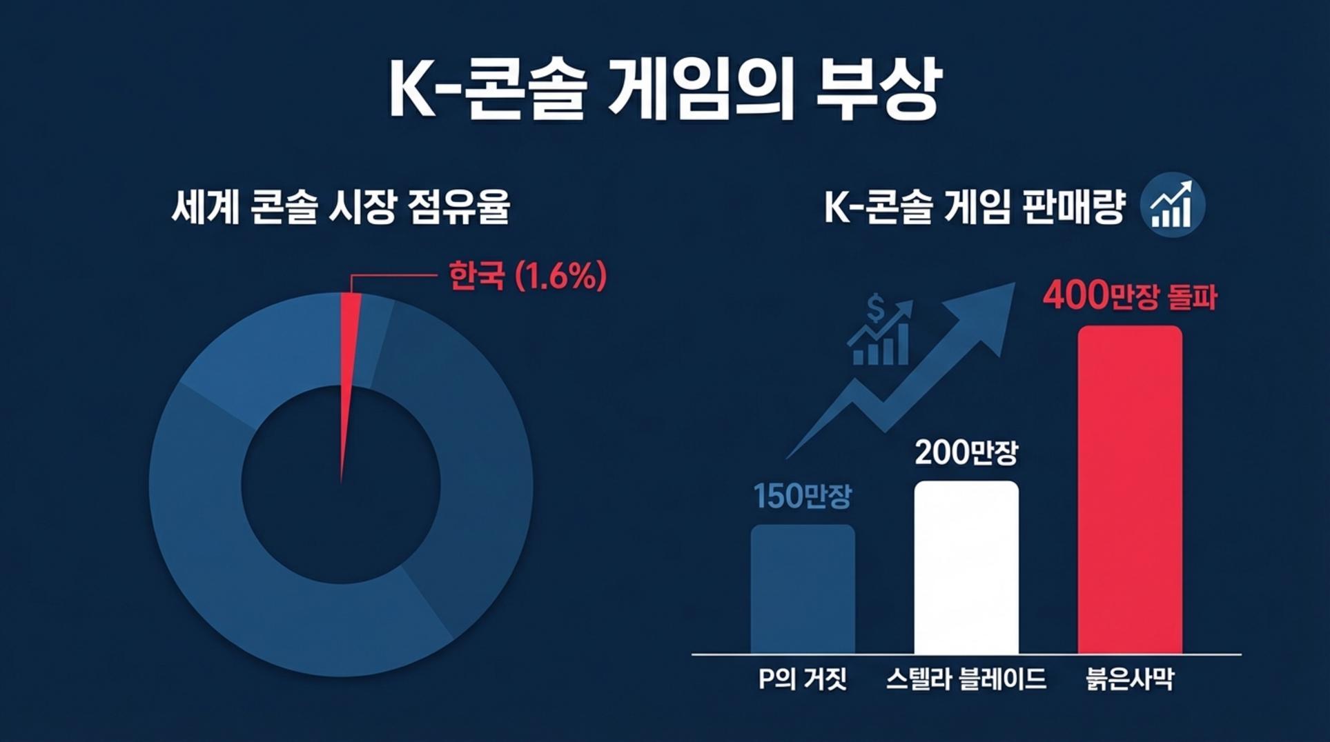 하지만 국내 시장이 포화 상태에 이르고, 중국 게임사들의 추격이 거세지면서 국내 대형 게임사들은 새로운 성장 동력을 찾아 해외로, 특히 구매력 높은 게이머들이 포진한 북미·유럽의 콘솔 시장으로 눈을 돌리기 시작했습니다. 네오위즈의 'P의 거짓'이 전 세계적으로 400만 장 이상 판매되며 가능성을 증명했고, 넥슨의 '데이브 더 다이버', 시프트업의 '스텔라 블레이드' 등이 연이어 성공하며 K-콘솔 게임의 성공 방정식을 만들어가고 있습니다.